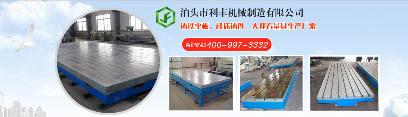 泊頭市利豐機械制造有限公司是生產工具,量具的單位,地處河北省泊頭市。我公司生產的鑄鐵平板、鑄鐵劃線平臺、機床鑄件、大理石量具等量具,具有設計合理、結構穩(wěn)定、使用壽命長等特點,廣泛用于機械加工、工具車間、裝配車間、機(檢)修車間、計量室及精密加工的檢驗、測量和研究。熱忱歡迎_兄弟廠家朋友前來我公司參觀考察合作,在互惠互利的基礎上,攜手共進,共圖發(fā)展。
